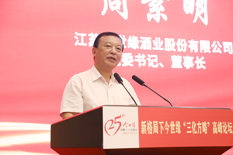 8月26日,在今世緣創(chuàng)牌25周年之際,新格局下今世緣“三化方略”高峰論壇在國(guó)緣賓館舉行。中國(guó)酒業(yè)協(xié)會(huì)理事長(zhǎng)宋書(shū)玉,中國(guó)食品工業(yè)協(xié)會(huì)黨委書(shū)記、副會(huì)長(zhǎng)兼秘書(shū)長(zhǎng)馬勇,中國(guó)酒類(lèi)流通協(xié)會(huì)秘書(shū)長(zhǎng)、云酒傳媒創(chuàng)始人秦書(shū)堯,著名品牌戰(zhàn)略專(zhuān)家李光斗等專(zhuān)家學(xué)者,應(yīng)邀在線上及現(xiàn)場(chǎng)出席活動(dòng),為今世緣高質(zhì)量發(fā)展問(wèn)道把脈。今世緣酒業(yè)黨委書(shū)記、董事長(zhǎng)周素明等領(lǐng)導(dǎo)班子成員出席論壇,黨委副書(shū)記、副董事長(zhǎng)、總經(jīng)理顧祥悅主持論壇。