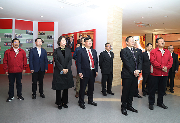 旺旺集團(tuán)首席運(yùn)營官、副總裁蔡旺家(前排右二)參觀今世緣展示中心。     紀(jì)驍洋 攝