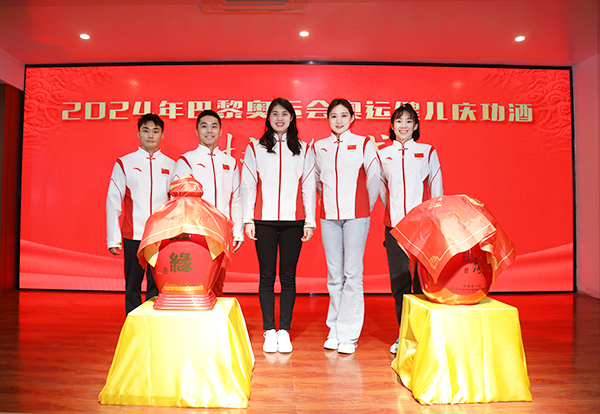 張雨霏、尤浩、咼俐、梁馨枰、孫煒等奧運(yùn)健兒在今世緣美酒銀行為江蘇奧運(yùn)軍團(tuán)巴黎奧運(yùn)慶功酒封壇。