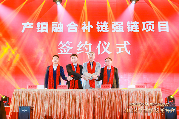 12月29日,2022今世緣發(fā)展大會舉行產(chǎn)鎮(zhèn)融合補(bǔ)鏈強(qiáng)鏈項(xiàng)目簽約儀式。