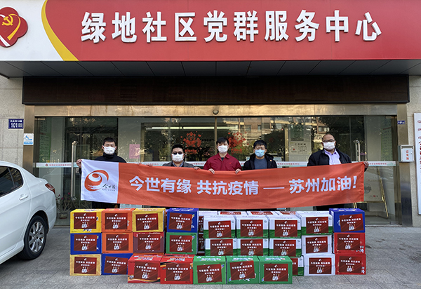 蘇州“2.13”疫情發(fā)生后,今世緣酒業(yè)蘇南大區(qū)各辦事處以及經(jīng)銷商伙伴踐行“釀美酒、結(jié)善緣”的企業(yè)使命,捐贈抗疫物資,以實際行動支持疫情防控,傳遞緣文化的溫度。
