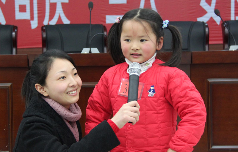 隨著主持人恰到好處的鼓動和煽情,一號寶寶在“眼鏡媽媽”的帶領(lǐng)下閃亮登場。別看小寶寶只有三歲,可是唱起歌來挺棒,“星”味十足,時不時還擺個POSS,逗得全場大笑。