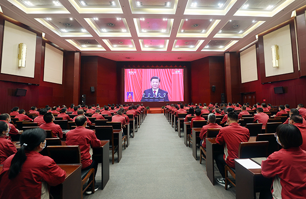 在今世緣會議中心主會場,今世緣酒業(yè)黨委書記、董事長、總經理顧祥悅等領導班子成員,黨員干部聚精會神收看大會實況直播。當雄壯的國歌聲在人民大會堂奏響時,收看直播的同志們全體起立,高唱國歌。開幕會上,習近平總書記的報告鼓舞人心,催人奮進。報告過程中,大家邊聽邊記,不時響起熱烈掌聲。