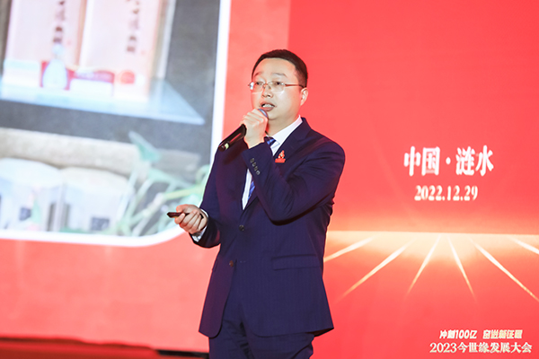 今世緣酒業(yè)副總經(jīng)理胡躍吾作2023年度營銷工作報告。