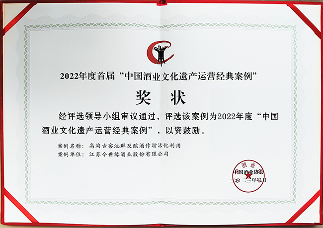遺產(chǎn)是火炬。為激勵廣大酒企保護好、運營好燦爛豐富的中國酒業(yè)文化遺產(chǎn),讓民族產(chǎn)業(yè)永遠綻放榮光。中國酒業(yè)協(xié)會組織文化遺產(chǎn)運營經(jīng)典案例評選,今世緣酒業(yè)“高溝古窖池及釀酒作坊活化利用”成功入選首屆“中國酒業(yè)文化遺產(chǎn)運營經(jīng)典案例”。茅臺、五糧液、洋河、瀘州老窖、汾酒、古井等共12家酒企獲此殊榮。