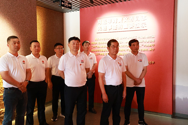江蘇今世緣酒業(yè)股份有限公司黨委書記、董事長、總經(jīng)理顧祥悅帶領(lǐng)公司黨員干部、優(yōu)秀合作伙伴黨員在廣西樂業(yè)縣百坭村參觀黃文秀先進(jìn)事跡展館。(姚曉友攝)