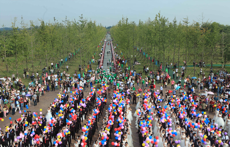 9月19日,以“緣系千秋·情定揚州”為主題的“揚州2500周年城慶今世緣集體婚禮”,在揚州瘦西湖畔的宋夾城體育休閑公園盛大舉行。中外258對新人身著西式婚紗禮服,在2500歲古城的見證下喜結(jié)連理。