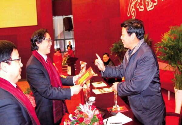 2013年1月9日,今世緣酒業(yè)舉行經(jīng)銷(xiāo)商聯(lián)誼會(huì)。公司董事長(zhǎng)、總經(jīng)理周素明為優(yōu)秀經(jīng)銷(xiāo)頒獎(jiǎng)。
