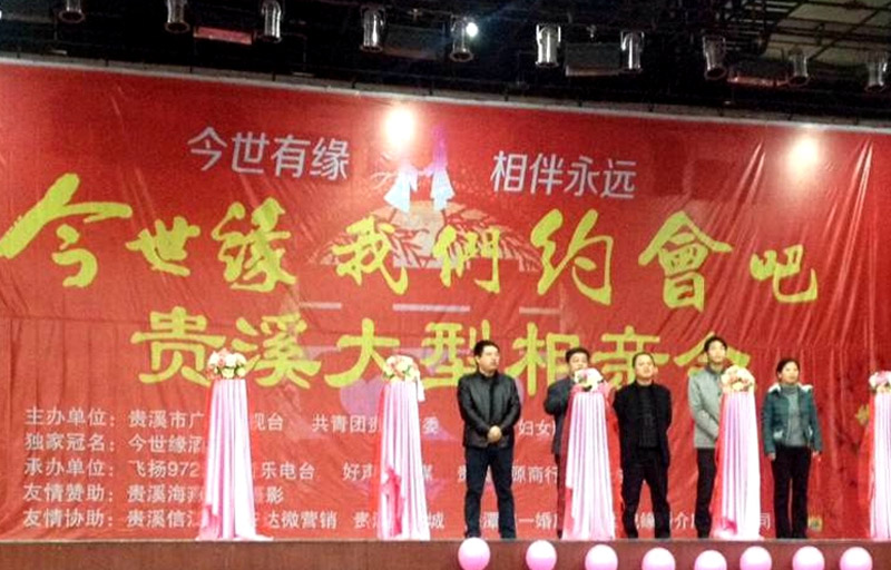 今世緣酒業(yè)與江西省貴溪市廣電、貴溪市團(tuán)委、貴溪市婦聯(lián)共同舉辦“今世緣·我們約會吧”大型相親會。